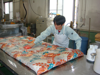 布団を痛めないように丁寧に仕上げます。